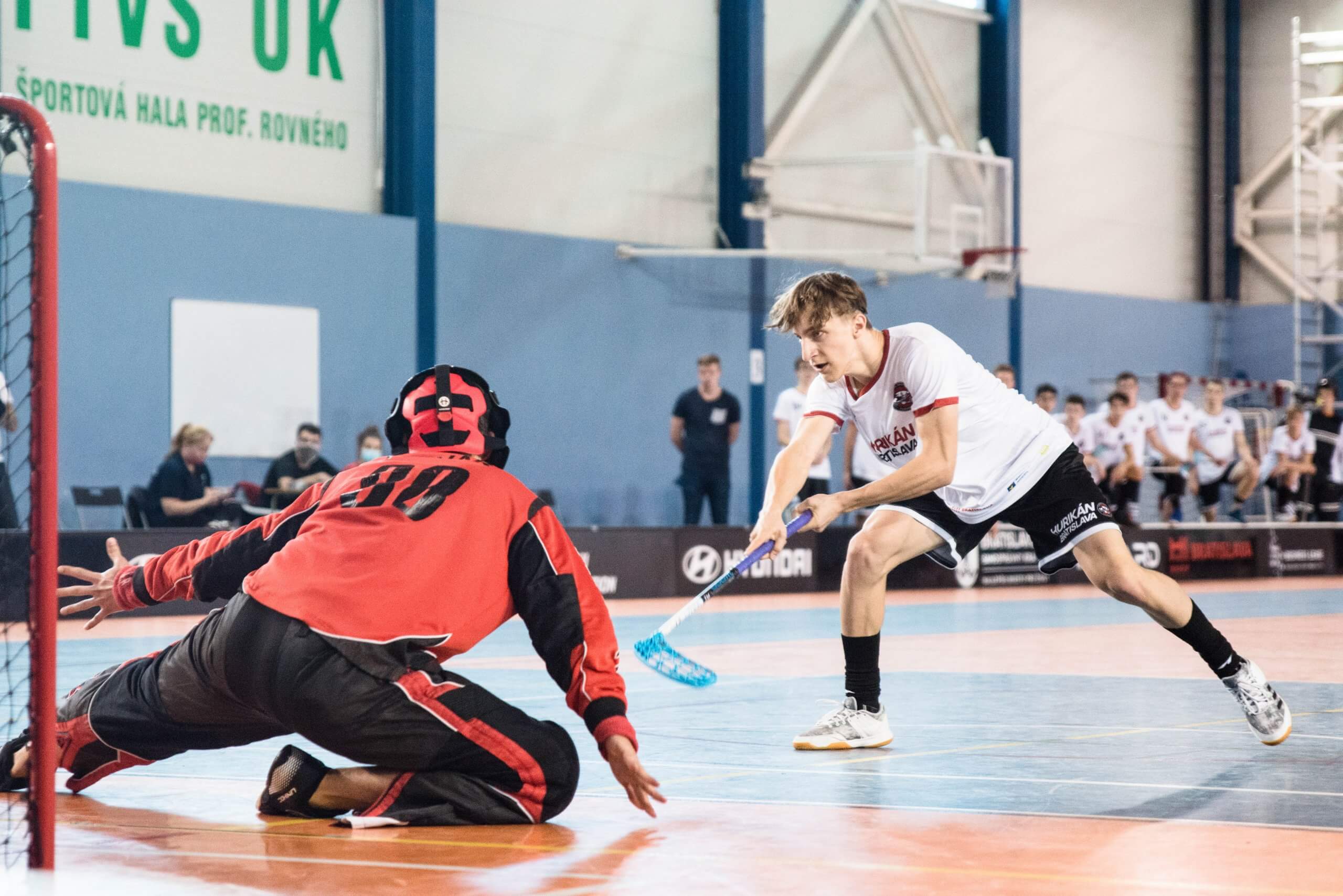 V nedeľu sme privítali na domácej palubovke hráčov z Púchova. Už v ôsmej minúte si naši muži vytvorili náskok 3:0 po strele Liszkaya, Fabiána a Doganova. V desiatej minúte znížil po rýchlej akcii na stav 3:1 Roman Berčík po asistencii Chrisa Hrušovského. Povzbudení Hurikánci sa opäť presadili v 11. minúte po strele Michala Petroviča a v zapätí si úspešne zapísal prvý bod v drese Hurikánu aj Ján Lacko, ktorý v aktuálnej sezóne bude hosťovať u nás z tímu ŠK LIDO. Do druhej tretiny lepšie vstúpili Púchovčania a ich najúspešnejší hráč Róbert Ševčík znížil na 5:2. V polovici zápasu zvýšil stav pre domácich na rozdiel štyroch gólov opäť Michal Petrovič. V oslabovke domáceho tímu za hru rukou Patrika Bajnoka si vypracovali gólovú situáciu Peter Doganov po nahrávke do prázdnej brány od Matúša Šablicu. Hostia využili nestrážený bránkový priestor a počas presilovej hry zničil Ján Sivčák na 7:3. Na trestnú lavicu išiel Michal Biely za hrubosť. Aj počas tohto oslabenia sme sa dokázali presadiť po úniku Petra Bieleho po nahrávke Igora Šarmíra. Aj v druhej presilovej hre sa dokázali hostia presadiť a Róbert Ševčík znížil na rozdiel 4 gólov. Záver druhej tretiny patril domácemu tímu a do sirény sa gólovo presadili rozbehnutý Petrovič a po krásnej akcii Michal Trgiňa. V polovici tretej tretiny za hostí rozvlnil sieť Adam Lupták a znížil rozdiel na 10:5. Záver duelu po tlaku domácich priniesol konečný výsledok 11:5 po strelení gólu Petrom Doganovom po výbornej kombinácii s Vladimírom Grambličkom.